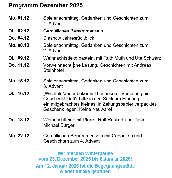 Sie haben Spaß daran, gemeinsam mit anderen zu Singen oder zu Spielen? Vielleicht möchten Sie auch einfach bei einer Tasse Kaffee ein nettes Gespräch führen? Oder möglicherweise haben Sie Lust, sich mal wieder zu bewegen oder einen guten Vortrag zu hören?